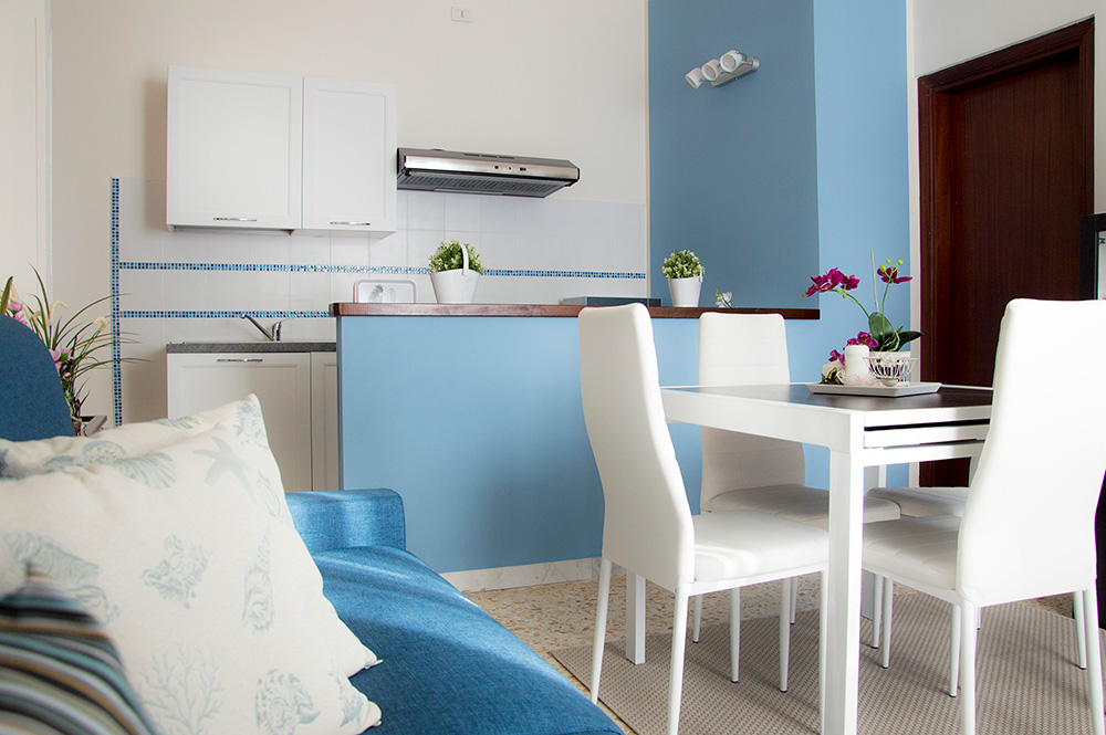 Tutti gli appartamenti sono dotati di frigorifero, forno a microonde, Smart-TV e Internet Wi-Fi. Climatizzati per estate ed inverno. La Smart-TV, oltre alla visione del digitale terrestre, permette la navigazione su web e la fruizione di files multimediali tramite dispositivi USB esterni. La cucina è attrezzata con stoviglie, tovagliette all’americana, posate e tutto il necessario per far vivere una vacanza in “casa propria”. Sono fornite biancheria da camera e da bagno, servizio cortesia da bagno.