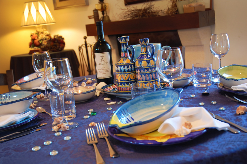 La sera, su richiesta, si potranno gustare ricercati piatti della tradizione di famiglia, come le paste artigianali profumate dalle verdure del l’orto biologico o le zuppe di legumi; le antiche ricette a base di carne o i piatti poveri dei pescatori; i formaggi di capra o i formaggi podolici dell’entroterra, fino ai dolci della casa. Il menu è fisso, varia ogni sera ed è fortemente legato alla stagionalità dei prodotti.
